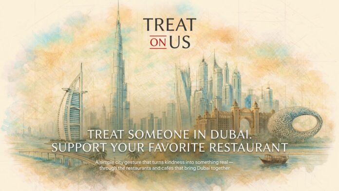 A new community-driven initiative, TreatOnUs.ae, launches in Dubai, inviting the public to directly support local restaurants by purchasing meals and drinks in advance, which are then offered by venues to guests and those in need.