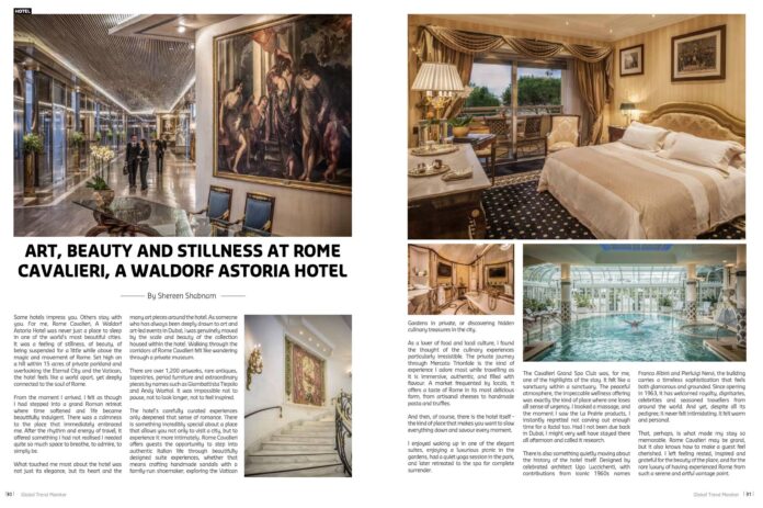 That, perhaps, is what made my stay so memorable. Rome Cavalieri may be grand, but it also knows how to make a guest feel cherished. I left feeling rested, inspired and grateful for the beauty of the place, and for the rare luxury of having experienced Rome from such a serene and artful vantage point.