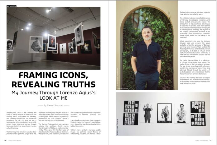 Stepping into LOOK AT ME: Framing the Iconic at Spazju Kreattiv in Valletta felt like crossing into a world where art, memory, and celebrity merged into one immersive experience. For me, this was not just a retrospective of Lorenzo Agius’s remarkable career. It was a personal journey through faces and stories that have shaped my own cultural memory.