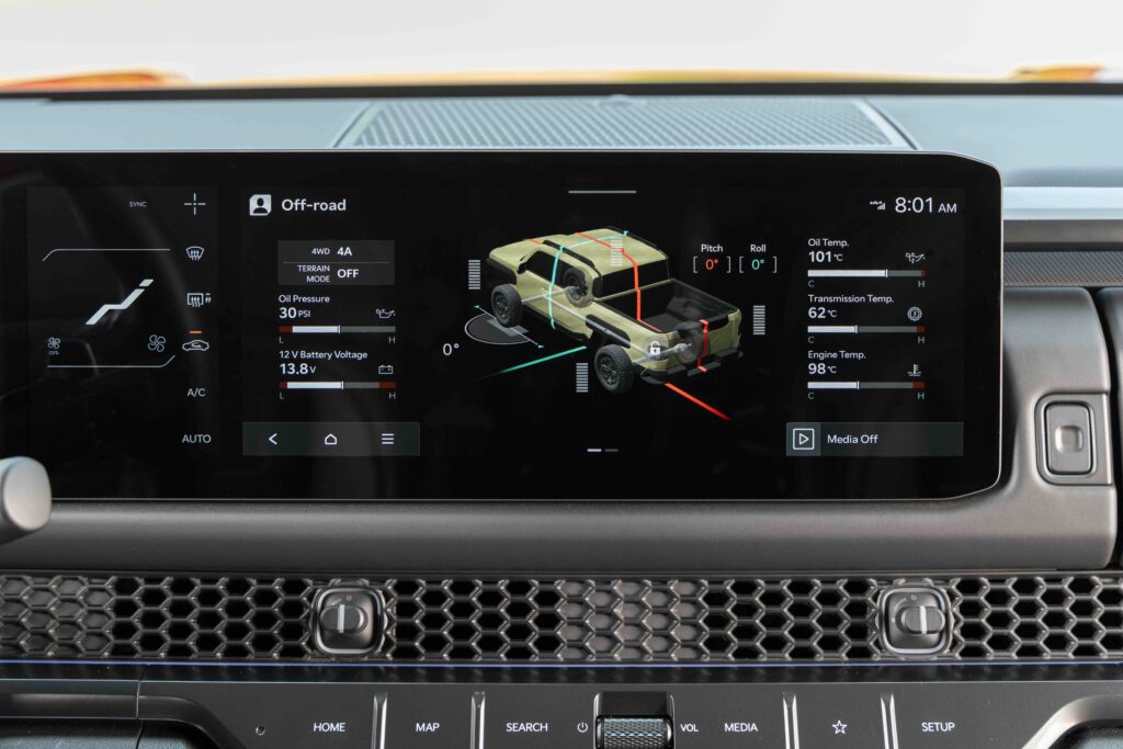 The Tasman is certainly well-equipped on tech. A large touchscreen infotainment system integrates navigation, media and connectivity features, while dual digital displays keep essential information visible with minimal distraction. Wireless Apple CarPlay and Android Auto support seamless smartphone integration.