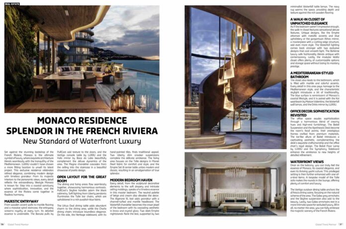 Set against the stunning backdrop of the French Riviera, Monaco is the ultimate symbol of luxury, where exquisite architecture blends seamlessly with the tranquility of the Mediterranean. LUXXU couldn’t have chosen a more fitting location to unveil its latest project. This exclusive residence celebrates refined elegance, combining modern design with timeless grandeur. From its majestic interiors to the panoramic views, every detail reflects the extraordinary lifestyle Monaco is known for. Step into a coastal sanctuary where sophistication, innovation, and the essence of the Riviera come together in flawless harmony.