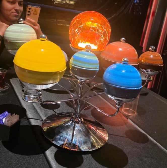 Dessert arrives with full drama presented in little planet like dishes together with the classic Turkish baklava paired with vanilla ice cream. Priced at AED 275 per person, the experience offers both culinary depth and an immersive environment that elevates the traditional Iftar format. A curated Suhoor offering from 10:00 PM extends the evening in a relaxed, visually captivating setting.