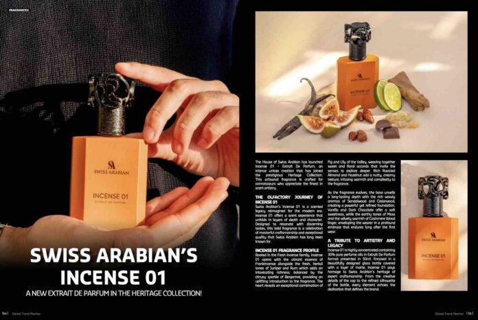 The House of Swiss Arabian has launched Incense 01 – Extrait De Parfum, an intense unisex creation that has joined the prestigious Heritage Collection. This artisanal fragrance is crafted for connoisseurs who appreciate the finest in scent artistry.