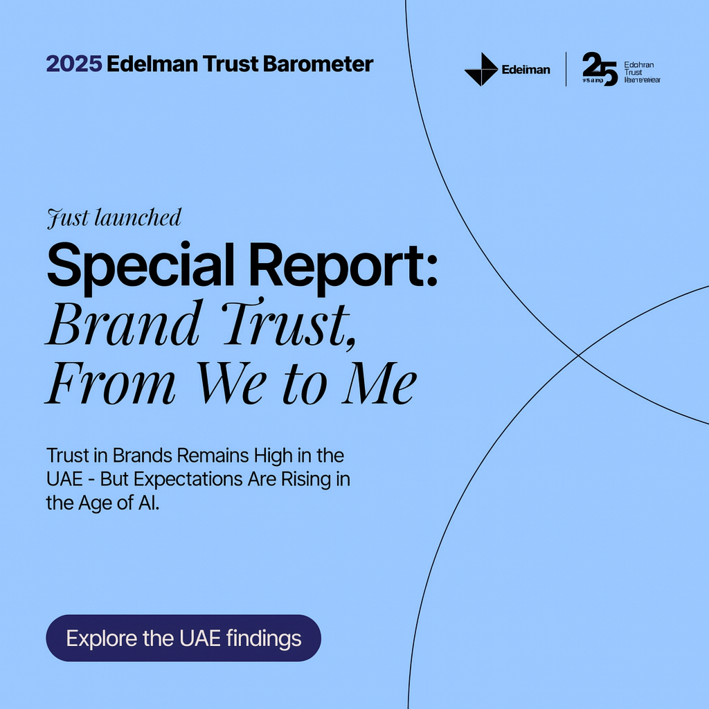 Edelman today released the UAE edition of its 2025 Trust Barometer Special Report: Brand Trust – From We to Me, revealing that while trust in brands remains exceptionally high, consumers in the Emirates are raising the bar on what they expect from the companies they buy from.