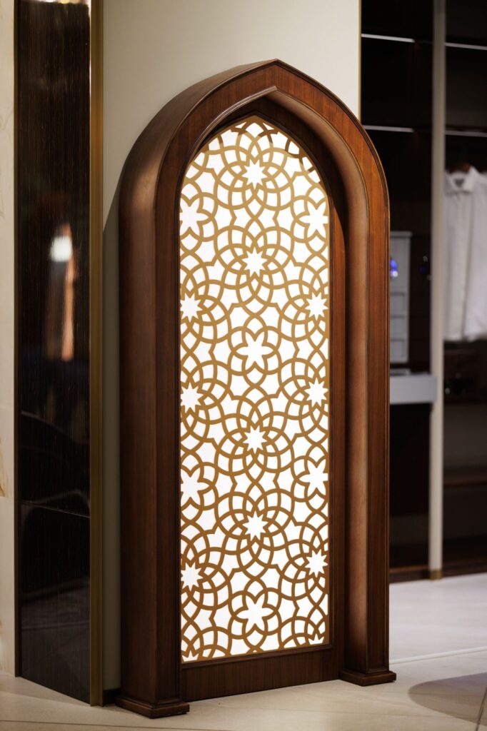 Architecturally, innovation remains discreet. The technology is embedded within softly illuminated arches inspired by classical Islamic design, each functioning as a personal mihrab. The result is a tranquil, timeless space where sacred tradition and modern living exist in harmony, with technology serving faith, never overshadowing it.